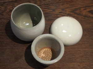 韓国への視察旅行で仕入れた可愛い茶器です。 すこし小さめですが、茶漉し機能付きです。 韓国は日本より漢方療法も盛んで、薬草を食事などに使う文化が古くから根付いています。 朝鮮人参が入っている参鶏湯なども有名ですね。 1700円 税別