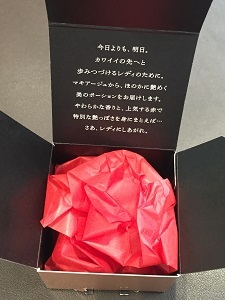 4種のレディーへの応援メッセージが、ふたのリボンに書かれています。どのメッセージが入っているかは開けてからのお楽しみに!