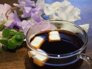 これをお砂糖の代わりとして、コーヒーや紅茶、もちろん当店オリジナルのたんぽぽコーヒーに入れていただくと、フワフワと浮かび、やさしい甘さとシナモンの香りが助け合い、スパイシーな飲み物になります。特に400、401、501、405、505、407、409とは相性抜群です。
