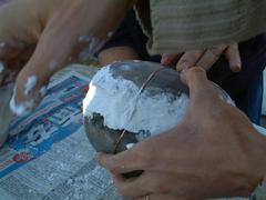 壺に火が入ると、中の薬草が灰になってしまうので、このように厳重に粘土で密閉します。